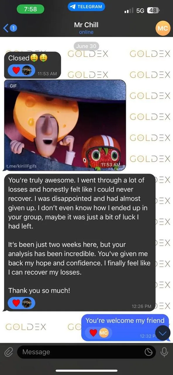 Goldex is the first channel where I don’t feel like I’m being scammed or lied to. They’re open about everything, even when a trade doesn’t work out. That honesty, combined with the consistent gold setups, makes this channel a gem.